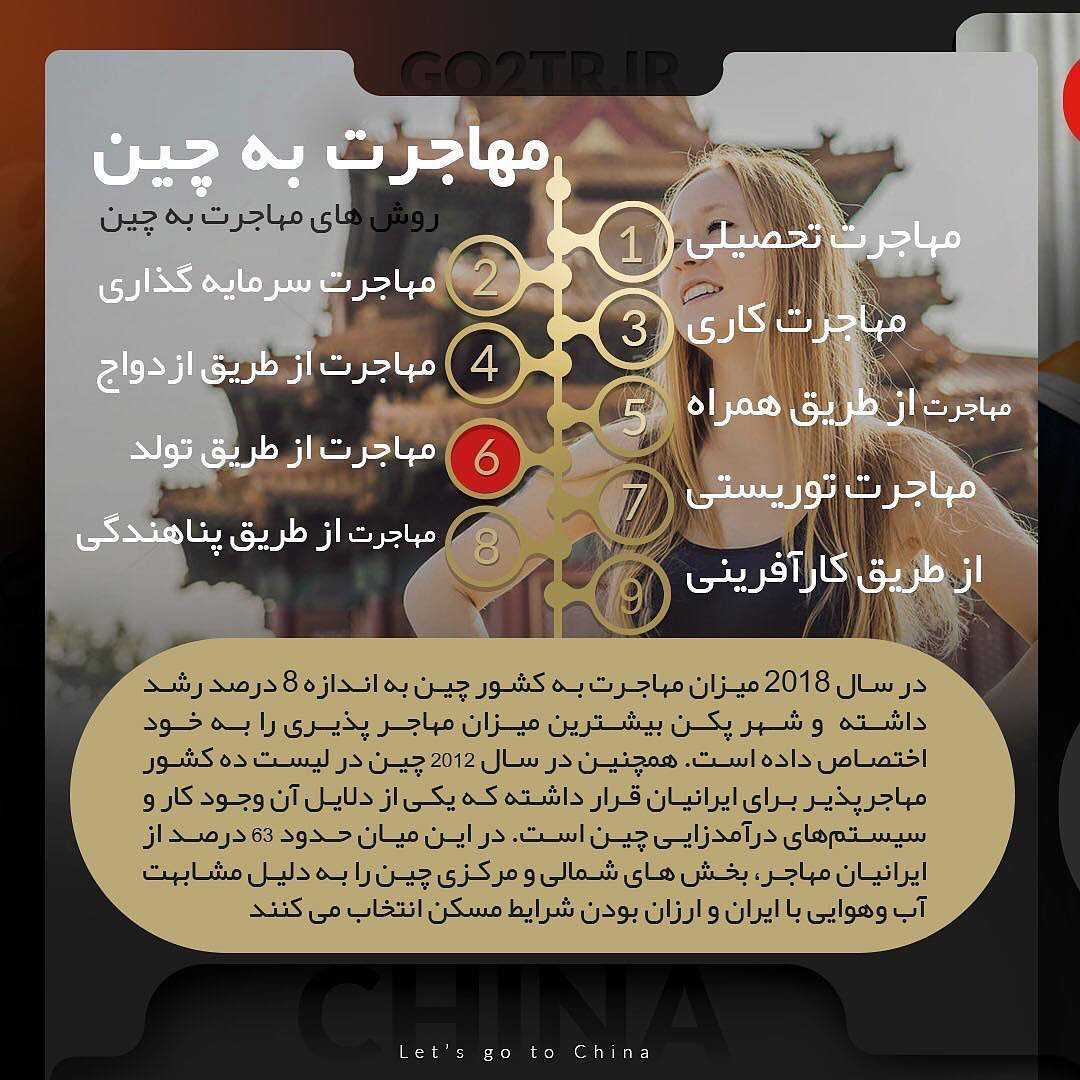 اگر شما هم با توجه به اقتصاد قوی کشور چین و وجود موقعیتهای شغلی در این کشور، قصد مهاجرت به این کشور از طریق سرمایه گذاری در چین، تحصیل در چین، کار در چین و دیگر انواع ویزای چین را دارید، تنها کافی است با مشاوران ما در موسسه مهاجرتی GO2TR در تماس باشید.