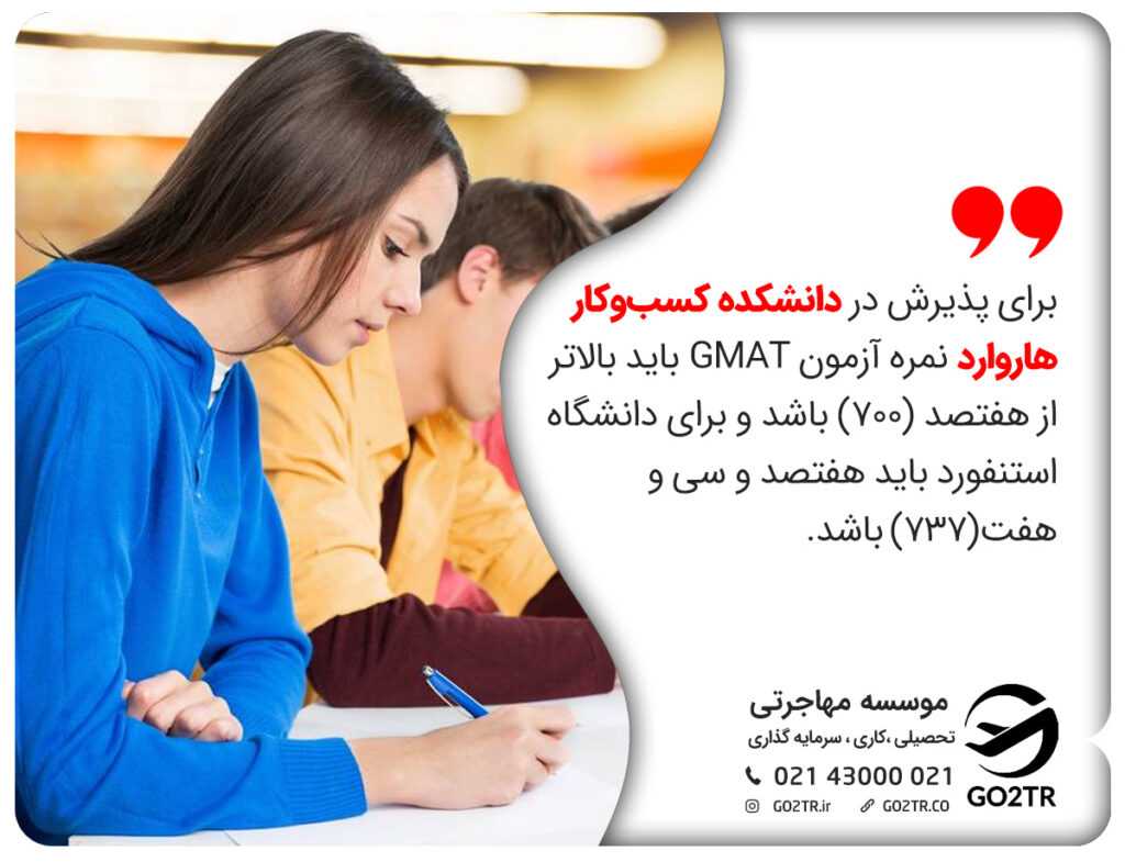 برای پذیرش در دانشکده کسبوکار هاروارد نمرهی آزمون GMAT باید بالاتر از هفتصد (۷۰۰) باشد.