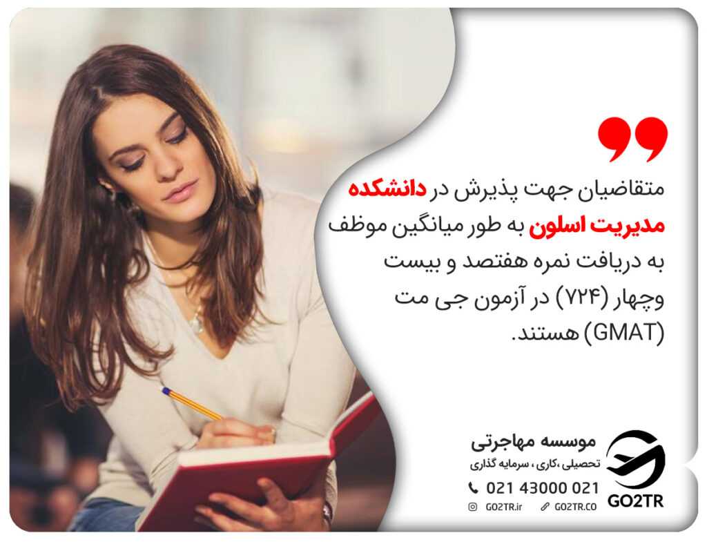 میانگین نمره آزمون GMAT جهت پذیریش در این دانشگاه باید هفتصد و سی و هفت (۷۳۷) باشد.