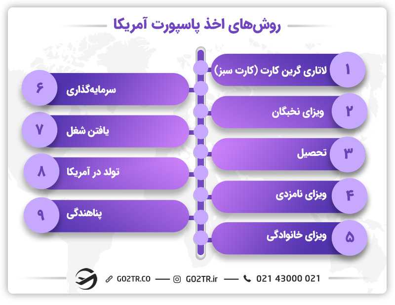 موسسه مهاجرتی GO2TR در این نوشتار شما را با روش های اخذ پاسپورت آمریکا آشنا خواهد کرد. پس همراه GO2TR باشید! همچنین شما میتوانید برای بررسی تخصصی شرایطتان جهت زندگی در آمریکا و همچنین مهاجرت به خارج، از طریق رزرو مشاوره مهاجرتی با کارشناسان GO2TR در ارتباط باشید.