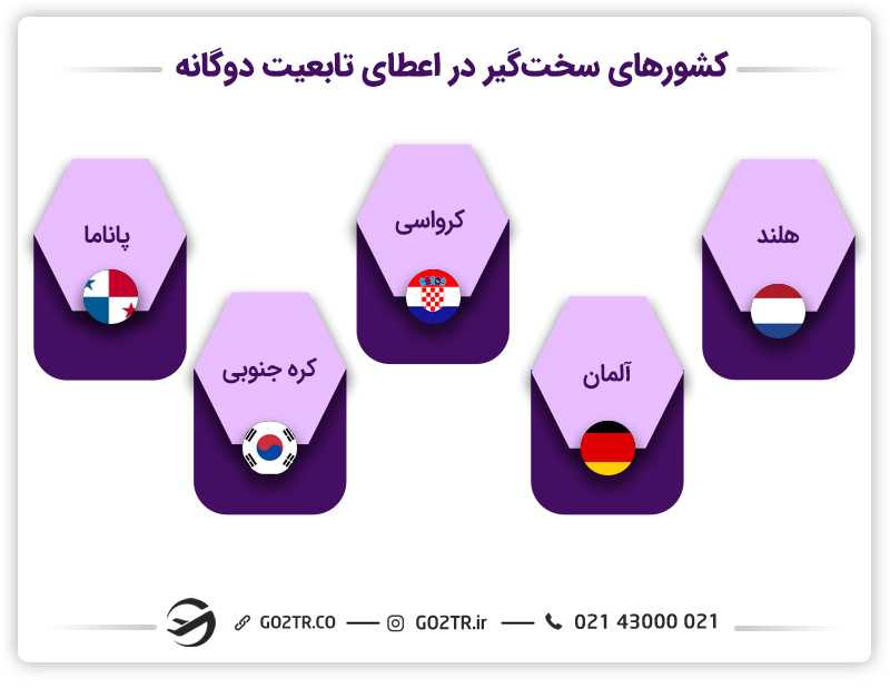 اخذ تابعیت دوگانه در این کشورها غیر ممکن است.