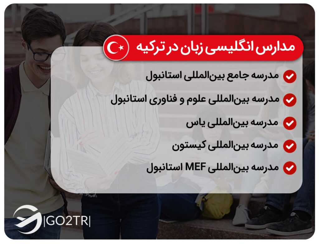 مدارس بینالمللی که در ترکیه به زبان انگلیسی تدریس میشوند به شرح زیر هستند: