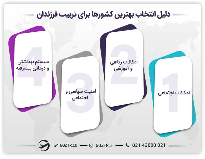 یکی از رایجترین مسائلی که ذهن برخی از والدین را به خود مشغول کرده است . یافتن بهترین مقاصد مهاجرتی برای رشد فرزندان خود است. اشتیاق برای مهاجرت به چنین کشورهایی تنها منحصر به مردم ایران نیست بلکه سایر ملیتها نیز به دنبال مهاجرت به چنین مکانهایی جهت ارتقای سطح زندگی خود و یافتن فضای امن اجتماعی هستند. فضاهایی که از سطح آموزشی و رفاهی بالایی برخوردار هستند و داری بهترین دانشگاههای جهان هستند. به همین جهت تحقیقی در دانشگاه پنسیلوانیا برای یافتن چنین مکانهایی صورت گرفت گرفت که نتایج و دلایل آنها را در این مطلب از GO2TR با شما کاربر گرامی به اشتراک میگذاریم. موسسه مهاجرتی GO2TR با بهرهمندی از بهترین متخصصین مهاجرتی به افراد کمک میکند تا بتوانند با کمک یکی از روشهای مهاجرت قانونی مثل اخذ تابعیت از طریق تولد فرزند، مهاجرت تحصیلی، مهاجرت کاری و غیره در بهترین کشورهای دنیا آینده خود و فرزندانشان را رقم بزنند.