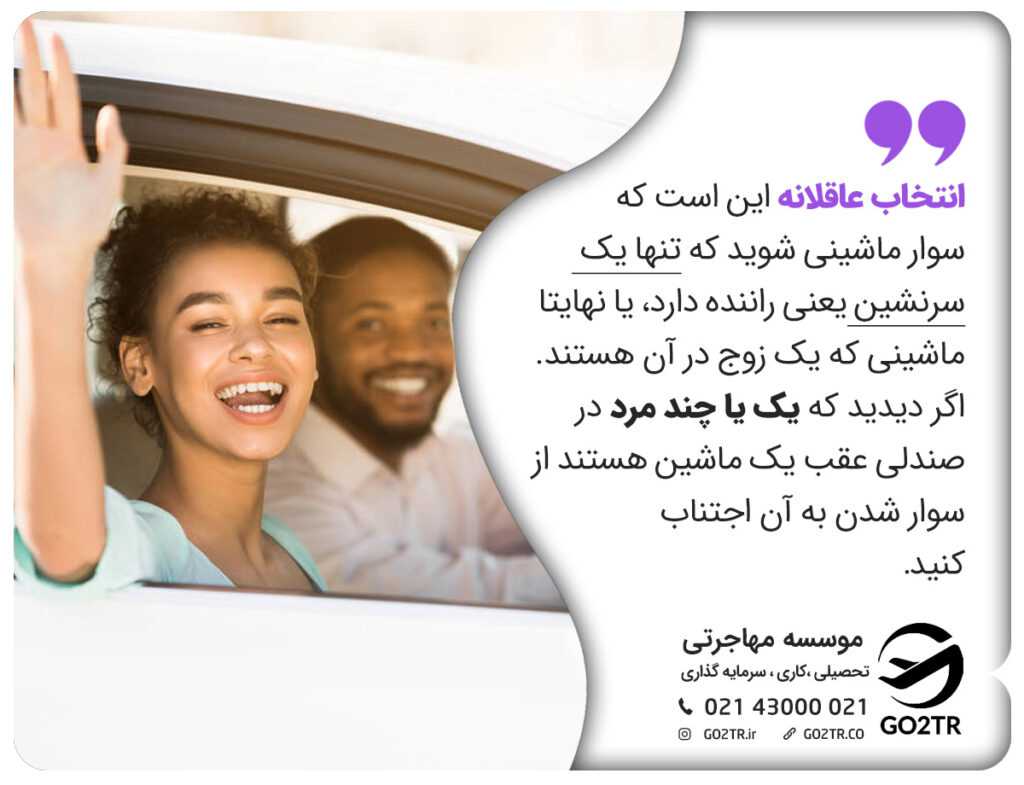 اگر میتوانید قبل از سوار شدن از ماشین عکس بگیرید و برای یکی از دوستانتان بفرستید.