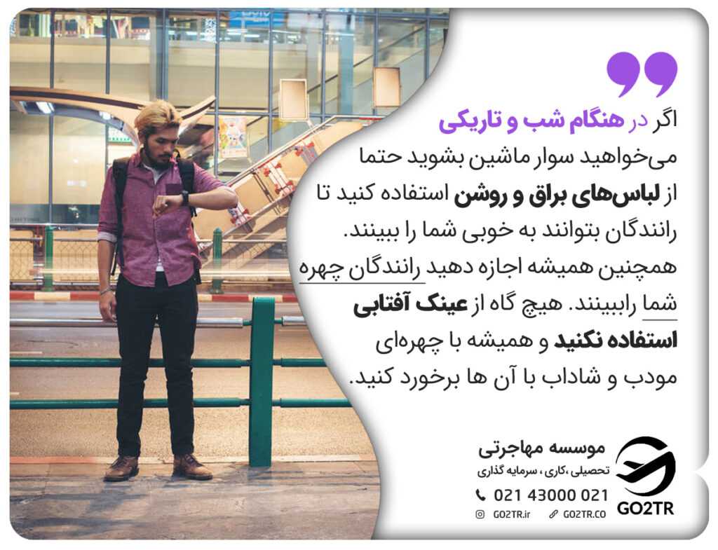 ۶- ممکن است هنگامی که راننده را می بینید حس خوبی به شما دست ندهد. در این حالت میتوانید با گفتن یک مقصد دور و پرت از اصرار راننده خلاصی پیدا کنید.