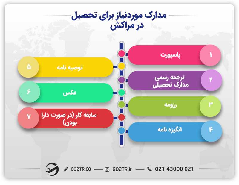 برای دریافت و ارزیابی وضعیت خود میتوانید با مشاوران موسسه حقوقی و مهاجرتی GO2TR تماس حاصل فرمایید و از نحوه ثبت نام و اخذ ویزای مراکش مطلع شوید.