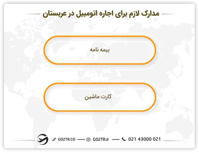 نیاز است که نوع اتومبیل و میزان کارکرد شما مشخص شده باشد. افراد بالای ۲۱ سال اجازه اجاره اتومبیل در کشور عربستان دارند و کمتر از ۲۱ سال باید اتومبیل به همراه راننده اجاره کنند. هزینه اجاره ماشین در این کشور میتواند از سوی دولت و بر اساس انتظارات مشخصی بررسی شود. برای اجاره اتومبیل در سفر به عربستان بههمراه داشتن بیمهنامه و کارت ماشین نیاز ضروری است.