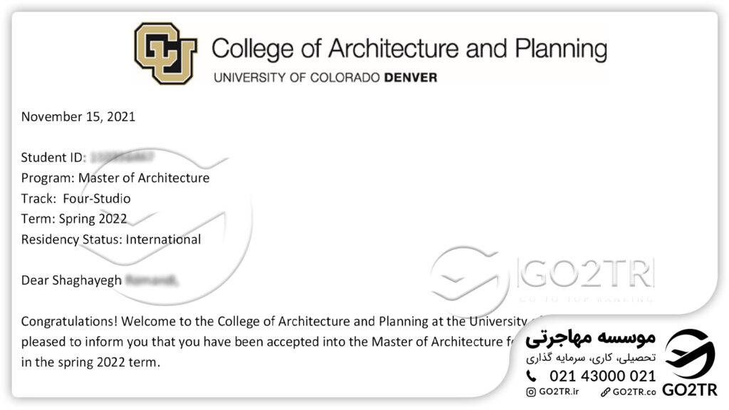 دو نمونه از پروندههای موفق GO2TR در زمینه اخذ پذیرش در رشته معماری: