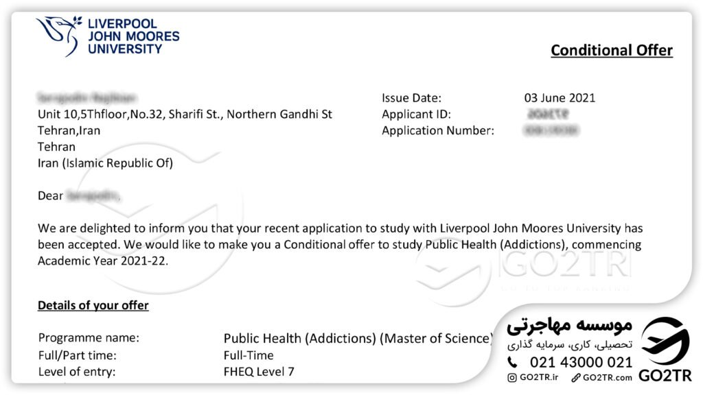 هلدینگ مهاجرتی GO2TR سابقهای درخشان در اخذ پذیرش تحصیلی، انواع مهاجرت کاری، سرمایهگذاری و … دارد. ما در این موسسه در تلاش هستیم که متقاضیان را با بهترین شرایط و کمترین هزینه به مقصد دلخواهشان برسانیم. در زیر، تعدادی از پروندههای موفق GO2TR برای اخذ بورسیه دانشگاههای انگلستان آمده است.
